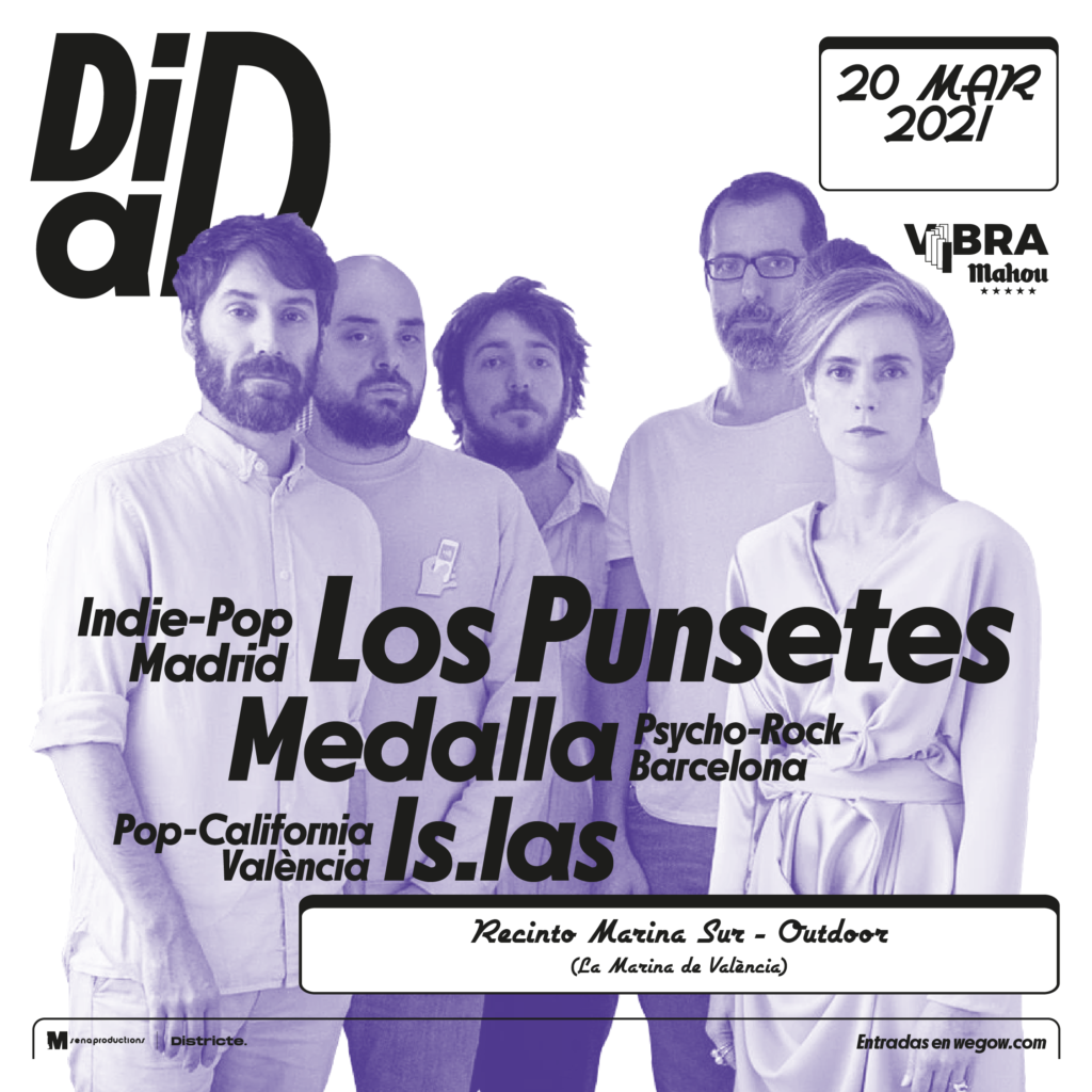 DiaD encenderá la ciudad el sábado 20 de marzo con las actuaciones de Los Punsetes, Medalla e Is.las en La Marina de València (recinto Marina Sur). Pegada, frescura, juventud y desparpajo son adjetivos comunes a los protagonistas de un cartel que lucirán sus mejores directos a plena luz del día. Vibra Mahou, la plataforma de música de Mahou Cinco Estrellas, vuelve a apoyar la iniciativa y consolida su apuesta por crear experiencias para generar encuentros en torno a la música en directo.