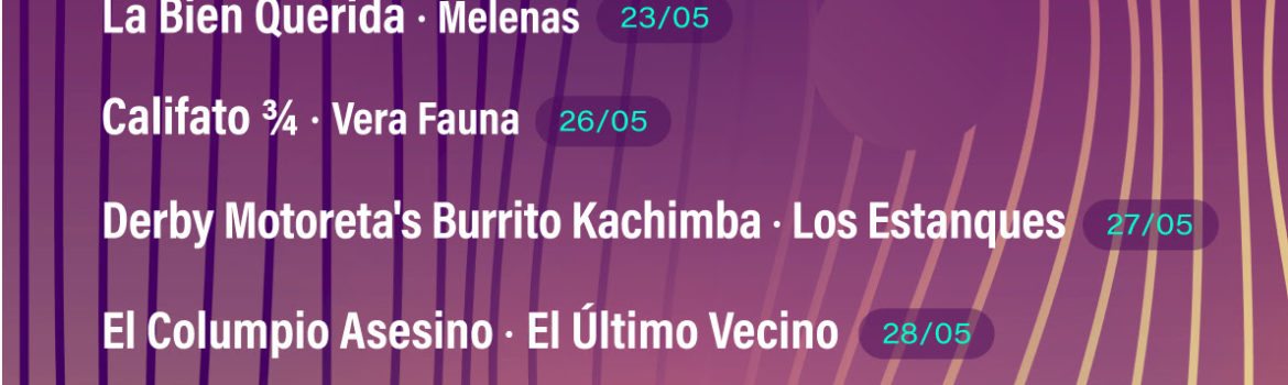 María Arnal i Marcel Bagés, Le Parody, Triángulo de Amor Bizarro, The Parrots, La Bien Querida, Melenas, Califato 3/4, Vera Fauna, Derby Motoreta’s Burrito Kachimba, Los Estanques, El Columpio Asesino, El Último Vecino, Novedades Carminha, Mujeres, Cupido y Confeti de Odio.