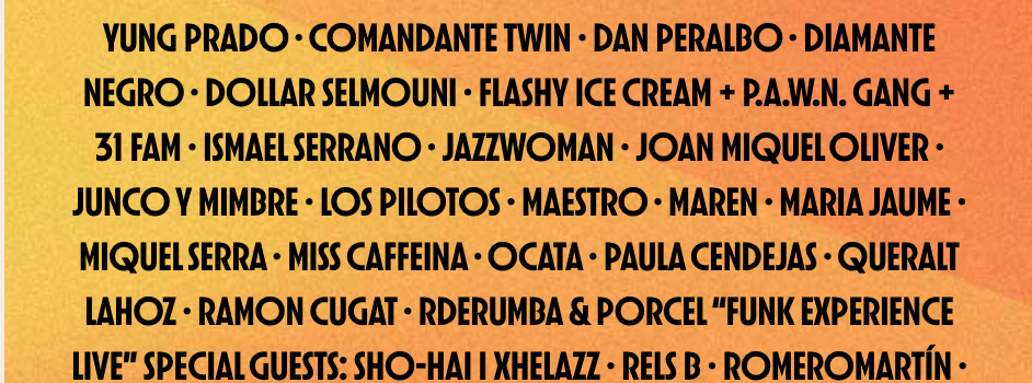 Entre los cerca de 50 conciertos que incluirá Cruïlla XXS, destacan los conciertos Ana Torroja, Victor Manuel, el espectáculo Maestro, Miss Cafeina, Ismael Serrano, Miquel Serra, Cepeda, Zoo, una noche con el mejor trap catalán (31FAM + Pawn GANG + flashy ICE CREAM), Rels B, Brigitte Laverne, Sofía Ellar, Joan Miquel Oliver, RdRumba & Porcel «Funk Experience Live» Special Guests: Sho-Hai & Xhelazz, RomeroMartin, Rodrigo Leao o B1NO.