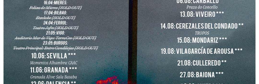 Este mismo mes de junio, haciendo paradas en ciudades como Sevilla, Granada, Valencia o Palencia, entre otras; para iniciar la gira por salas a finales de año, con citas ya anunciadas en Barcelona o Santiago de Compostela y con una importante fecha en Madrid que se anunciará en los próximos días. El proceso de embrujo ya se ha iniciado.