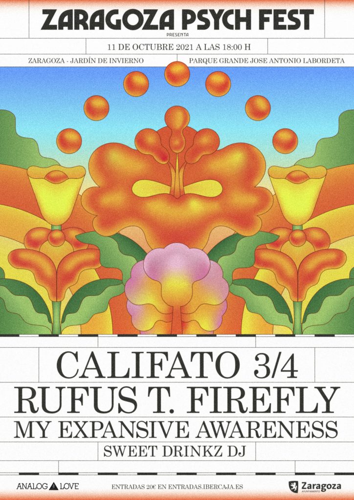 Después de un año sin poder celebrarse debido a las consecuencias de la pandemia, el Zaragoza Psych Fest vuelve a la carga el próximo 11 de octubre con un triple cartel formado por tres de las bandas que más han dado qué hablar en los últimos años: Califato ¾, Rufus T. Firefly y My Expansive Awareness. El Zaragoza Psych Fest, que este año habría cumplido su novena edición, siempre se ha caracterizado por ser un festival que, utilizando la cultura psicodélica como hilo conductor, ha ofrecido unos carteles eclécticos y arriesgados que siempre han hecho la delicia del público zaragozano tanto a la hora de descubrir nuevas propuestas como para poder ver bandas ya consolidadas.