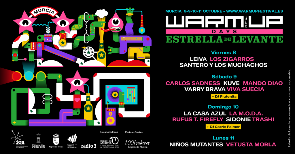 WARM UP Days ya está aquí. 19 meses después de que la música en directo se apagara, La Fica vuelve a sonar y a vibrar con las voces de los asistentes y los conciertos de 17 artistas confirmados. Vuelven los saltos, vuelven las primeras filas y los bailes tan esperados al recinto donde, desde mayo de 2019, no sonaba la música. A apenas 10 días de la apertura de puertas, la organización de WARM UP Estrella de Levante da el pistoletazo de salida a esta edición reducida y con formato especial en la que se recupera la esencia de la música en directo.