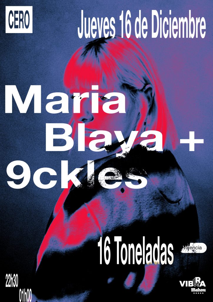 Desde @cero.en.conducta siguen apostando por el concierto en sala, por el talento emergente, local, nacional e internacional y desde esa perspectiva presentan el concierto en sala de 9ckles + Maria Blaya.