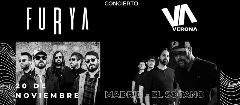 La banda valenciana Furya acompañados de los granadinos Verona actuarán en la sala El Sótano en Madrid el próximo sábado 20 de noviembre.