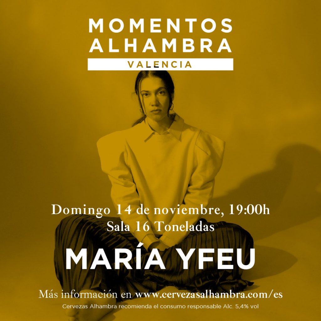 Momentos Alhambra llega a la Sala 16 Toneladas de València el próximo domingo 14 de noviembre a las 19:00h con el sonido arrebatador que ofrece María Yfeu. Su eclecticismo, sin corsés ni ataduras, permite a la artista sumergirse en su pasión desde varios prismas, con influencias