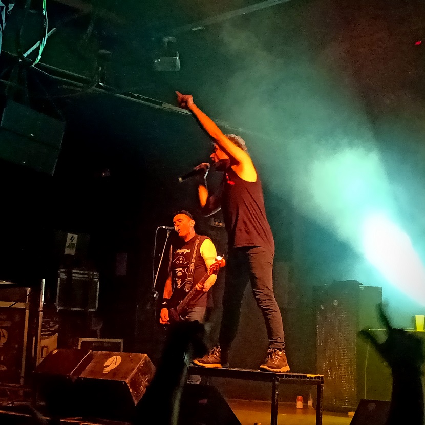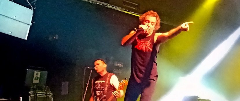 Sonó un tema tan contundente como “Detector de gilipolleces”. Todos tenemos ese detector si no hay nada roto dentro, y aún así funciona; “Si vienes a por pasta me avisa, si vienes a liarla me avisa, si vienes a cobrar, si vienes a enmarronar, yo vivo tranquilo porque avisa…”. Aitor nos acercaba el micro para que cantásemos juntos, él decía “gili gili” y nosotros le contestábamos, “pollas pollas”. Siguieron con “Violencia en acción”, con el asunto de la autodefensa tratado como siempre con una fuerte dosis de humor, ácido, duro, serio y cachondo, a la vez.