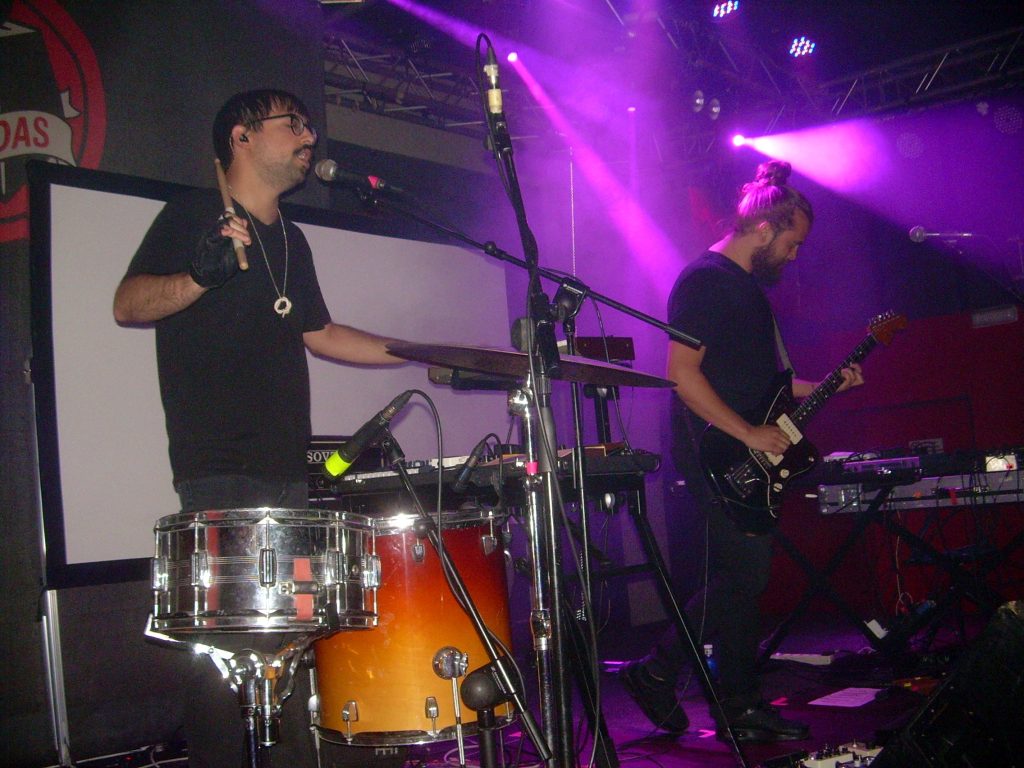 El dúo Gamada interpretó su EP “II” al completo, publicado por Matando al Padre Ediciones / Desorden Sonoro, con una sobria puesta en escena en la que M. se ocupa de la voz, percusión y teclados, y C. a la guitarra extrayendo sonidos de su pedalera de efectos con temas oscuros al estilo de The Sisterhood o Death In June. Comenzaron con “Volver a verte” y “Frontera”, medios tiempos de gran intensidad que ganan en directo, dotándolas de fuerza, seguidas por la emotiva “Invierno”.