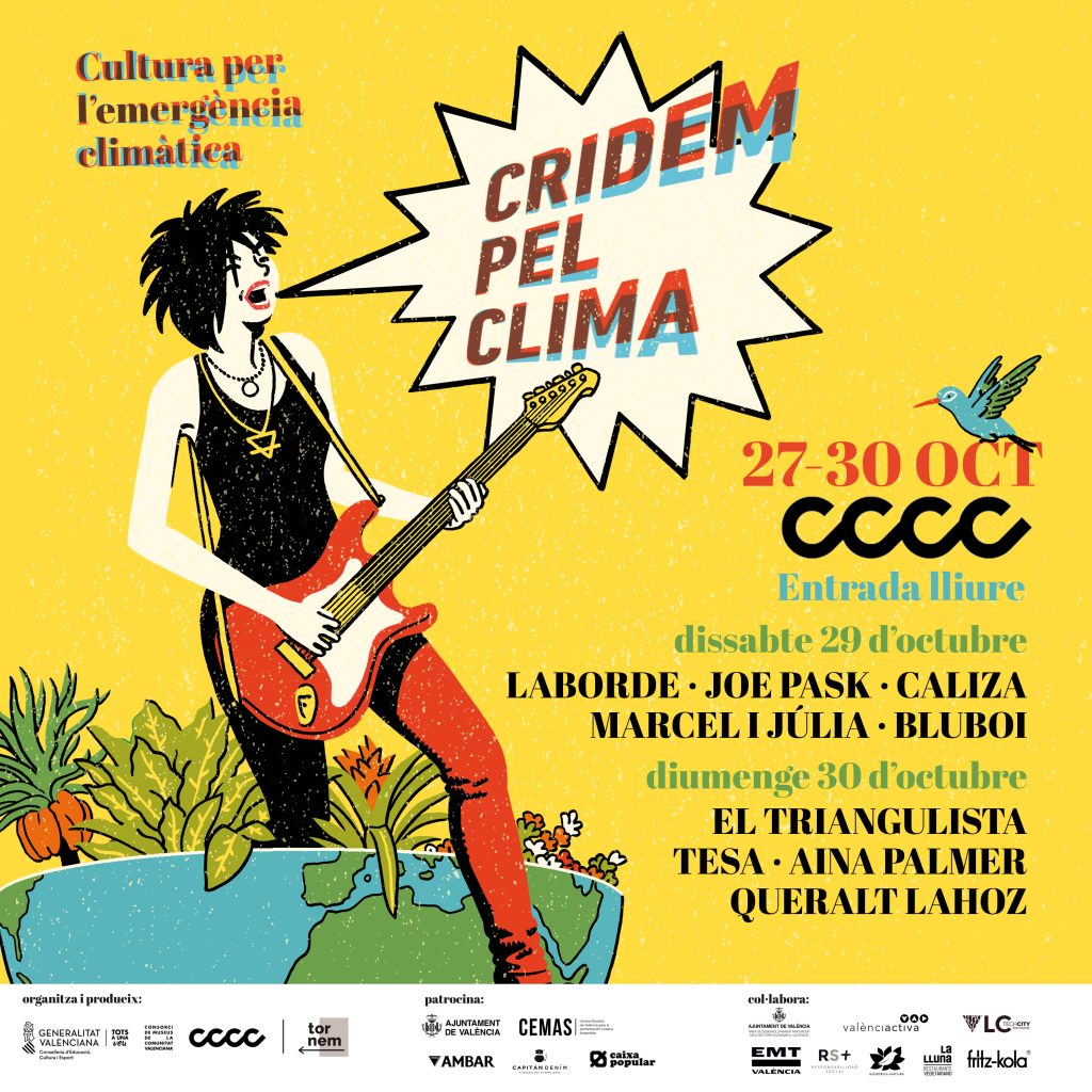 Del 27 al 30 de octubre la segunda edición del festival Cridem pel Clima une música, cine, arte urbano, charlas, debates y talleres para concienciar sobre la crisis climática.