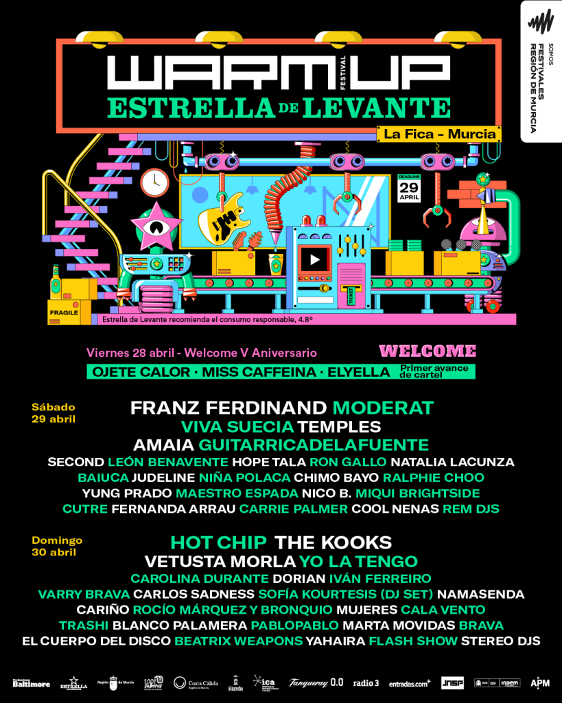 A menos de tres meses para volver a abrir las puertas del recinto de La Fica, WARM UP Estrella de Levante presenta hoy el cartel por días con grandes nombres internacionales y nacionales como Franz Ferdinand, Hot Chip, Moderat, The Kooks, Viva Suecia, Vetusta Morla o Yo La Tengo, entre otros.