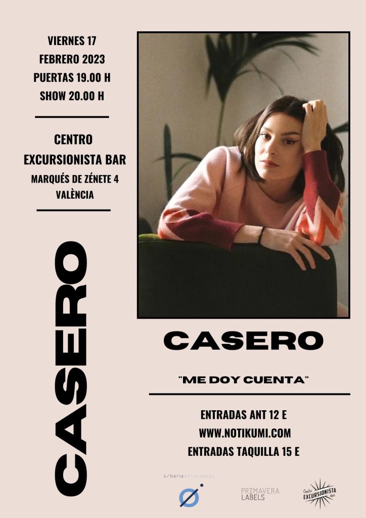 Casero actuará en el Centro Excursionista de Valencia el 17 de febrero, presentando su nuevo disco «Me doy cuenta», organizado por Siberia en la Cabeza.