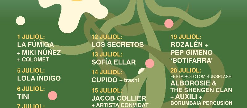 Laura Pergolizzi, más conocida como LP, debutará en València el martes 18 de julio. Considerada una de las artistas más consolidadas del pop-rock internacional, pondrá de largo el disco Churches. Unas horas más tarde, el día 19, el público de Viveros se podrá reencontrar con Rozalén. La artista manchega ofrecerá en la capital del Turia uno de los pocos conciertos que hará durante 2023. Ella celebra una década sobre los escenarios con Matriz, donde rinde homenaje al folclore. En esa línea también trabaja desde hace años Pep Gimeno «Botifarra», gran recuperador de la tradición oral valenciana, quien acaba de editar el álbum Ja ve l’aire. El escenario de los Jardines del Real volverá a la actividad el jueves 20 para acoger una de las fiestas de presentación del Rototom Sunsplash, el festival de reggae más importante de Europa y que tiene lugar anualmente en Benicàssim. Este año, la música jamaicana estará representada por el italiano Alborosie & The Shengen Clan y los valencianos Auxili. La Escuela de Borumbaia Percusión se encargará de calentar el ambiente con sus tambores.