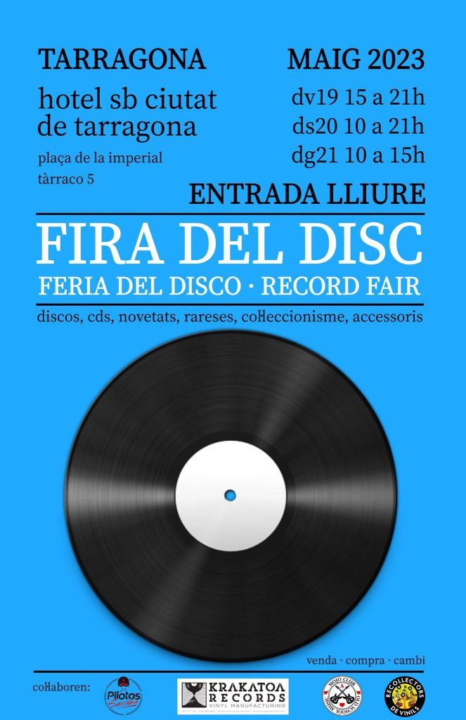 Os informamos de la próxima Feria del Disco de Tarragona, que tendrá lugar en el Hotel SB Ciutat de Tarragona (Plaça de la Imperial Tàrraco, 5) el próximo mes de mayo. Serán tres dias, el viernes 19 de 15 a 21h, sábado 20 de 10 a 21h, domingo 21 de 10 a 15h, con entrada libre.