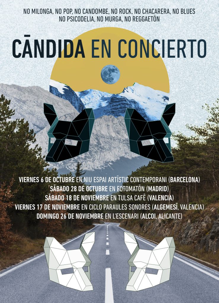 Liderado por la cantante y compositora valenciana Candi Imbernón y el músico y productor Juan Barcala, este proyecto lleva más de 10 años defendiendo un sonido propio e intransferible que fusiona diversos géneros de herencia latina y anglosajona. En palabras del crítico musical Marcos Gendre, Cándida es “una de las propuestas más interesantes de la boyante renovación folclórica que estamos viviendo en estos últimos años”.
