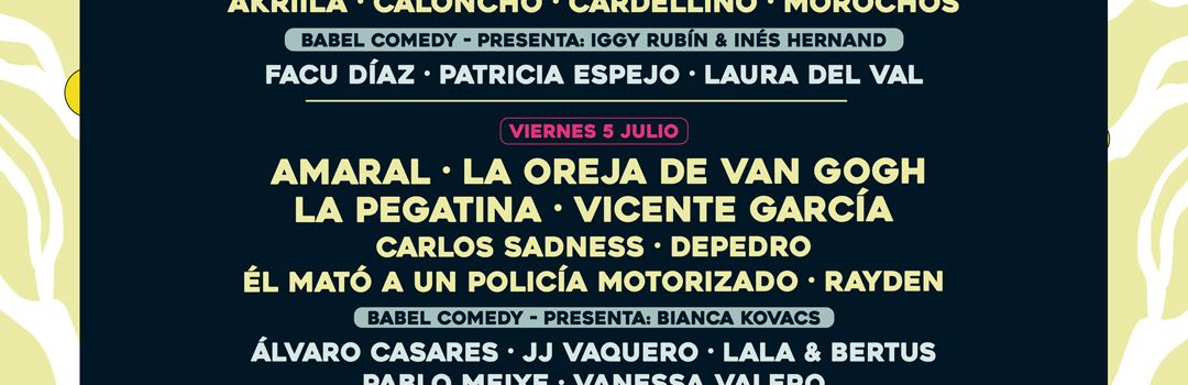 Además, Babel Comedy ya se ha convertido en un clásico del festival madrileño. Es un espacio en el que la diversión y las risas siempre están aseguradas gracias a los mejores y las mejores humoristas de nuestro país. Repetirán un año más Iggy Rubín e Inés Hernand, pero también estarán Facu Díaz, Patricia Espejo, Laura del Val, Álvaro Casares, JJ Vaquero, Lala & Bertus, Pablo Meixe, Vanessa Valero, Héctor de Miguel, Miguel Campos, Raquel Hervás & La Prados, Sergio Bezos y Valeria Ros.