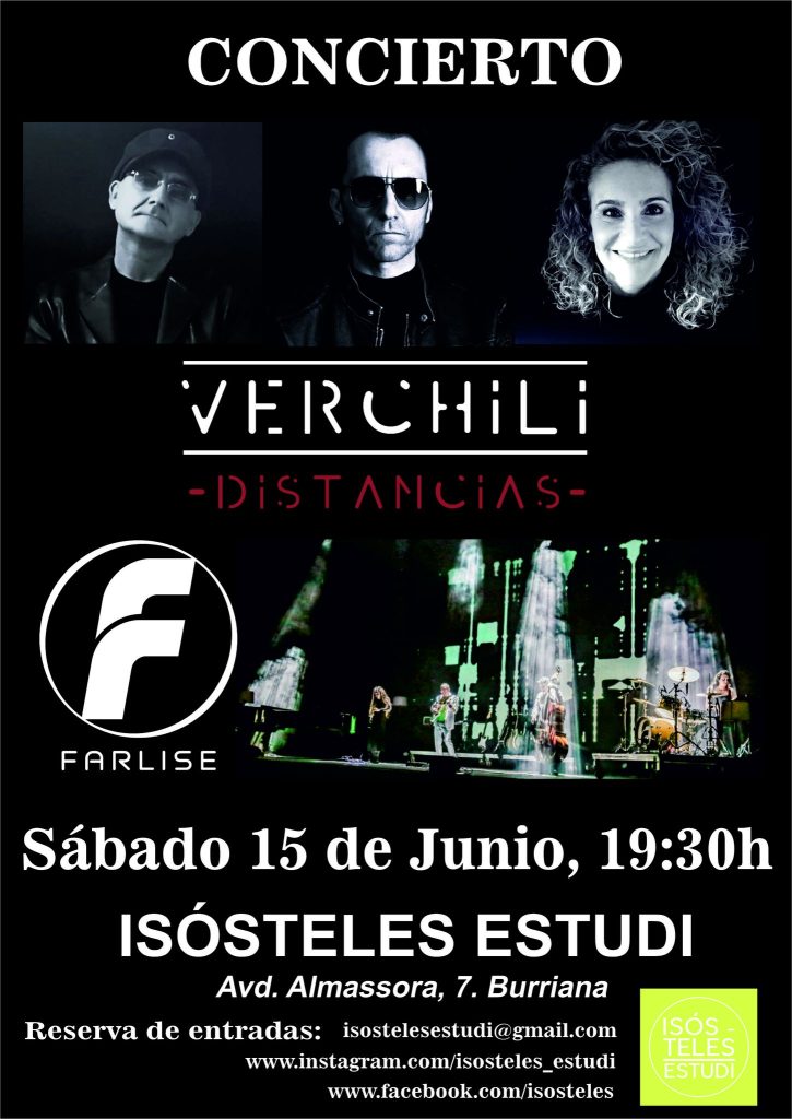 El doble cartel integrado por Farlise y Verchili cierra la temporada de programación en el Isósteles Estudi de Burriana (carretera de Almassora, 7). Será la última cita de la segunda temporada de EnVers, un ciclo autogestionado que intentar acercar al público propuestas musicales y artísticas en general alejadas de las programaciones más habituales. Dos actuaciones que tendrán lugar el sábado 15 de junio (19:30).