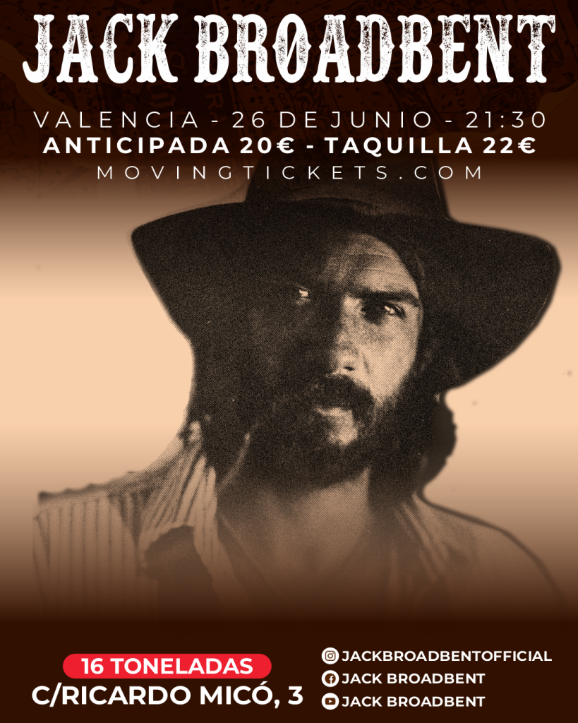 Le viene de familia al bueno de Jack. Su padre, Mick Broadbent, tocó el bajo formando parte de esa deliciosa banda de power pop de finales de los setenta que fueron Bram Tchaikovsky. Pero lo suyo es, decididamente, otra cosa: “Willin’” de Little Feat, “Hit the road Jack” de Percy Mayfield o “Black Magic Woman” de Fleetwood Mac son algunas de las versiones que acomete en sus directos. Toda una señal de cuáles son principales influencias, que somatiza con rotunda contemporaneidad. Tanto Lynyrd Skynyrd como Peter Frampton, Ron Wood o Richard Thompson han girado con él. Saben muy bien de lo que es capaz. Y por eso le alaban.