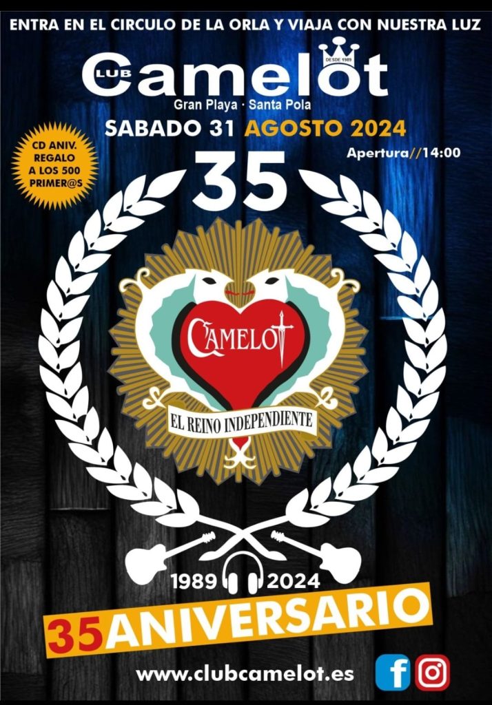 El próximo sábado, 31 de agosto, Camelot cumple años, ya son 35 y por este feliz motivo reúne al mejor elenco soñado de DJS del auténtico “Sonido Camelot” –indie, electro, pop, flow…– para disfrutar, desde el mediodía y hasta el amanecer, de todos esos temazos e himnos que, desde 1989, nos hicieron mejor la vida en el reino de la música independiente en una gran fiesta de verano, al borde del mar. ¡Una fecha para apuntar con letras de oro en la agenda de todos los “cameloteros”!