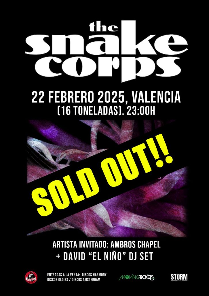 The Snake Corps, banda británica que obtuvo gran éxito en Valencia durante la década de los 80 gracias a un tema instrumental, «This Is Seagull…», actuará el próximo 22 de febrero en la sala 16 Toneladas de Valencia tras aplazar su concierto de noviembre pasado por la Dana, con Ambros Chapel abriendo la velada y DJ set de David «El Niño».