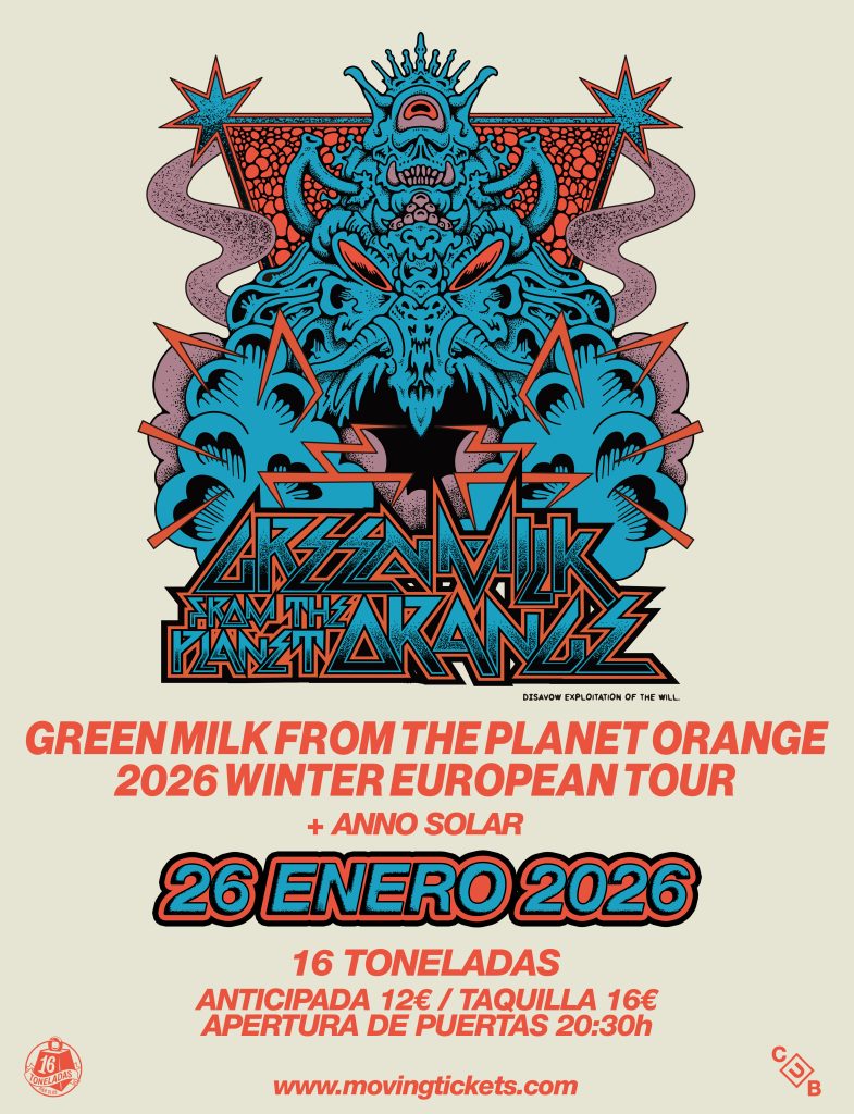 El lunes 26 de enero en el 16 Toneladas, la Asociación CUB Valencia presenta —con ganas de extender la aventura vivida— a Green Milk from the Planet Orange, conjunto japonés de rock progresivo originario de Tokio, lejos de la deriva post-hortera asociada al género. Escucha el remáster de City Calls Revolution y créete degustando un niguiri en casa de Fripp en el 74, con wasabi iracundo, hasta darle un sabor punk psicotrópico y toques vocales picantes, de punta fina en el paladar, que sorprenden y te hacen viajar en albornoz hasta el planeta naranja para descubrir un nuevo umami.
