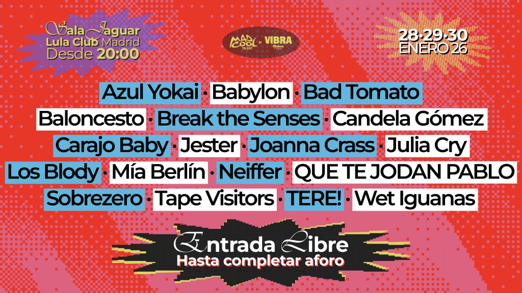 Una vez más, será la sala Lula The Club la que acogerá las finales de Mad Cool Talent by Vibra Mahou, los días 28, 29, 30 de enero. La apertura de puertas está marcada a las 20.00 horas y será un evento de entrada libre hasta completar aforo.