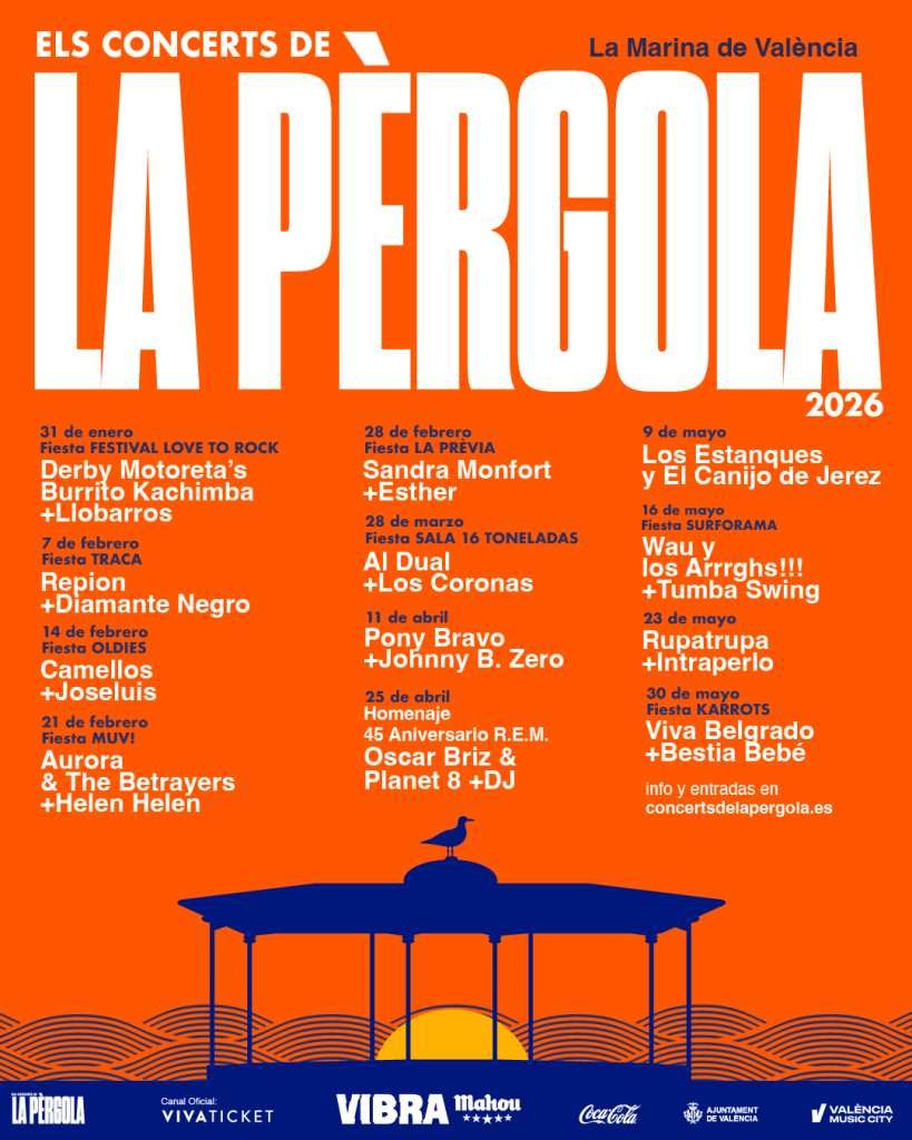 La música en directo vuelve a sonar este sábado, 31 de enero, en La Marina de València con el estreno oficial de Els Concerts de La Pèrgola 2026, que arranca con un sold out en su primera cita del año. El concierto inaugural, protagonizado por Derby Motoreta’s Burrito Kachimba y Llobarros, confirma el respaldo del público a un ciclo ya consolidado como uno de los planes culturales imprescindibles de la ciudad.