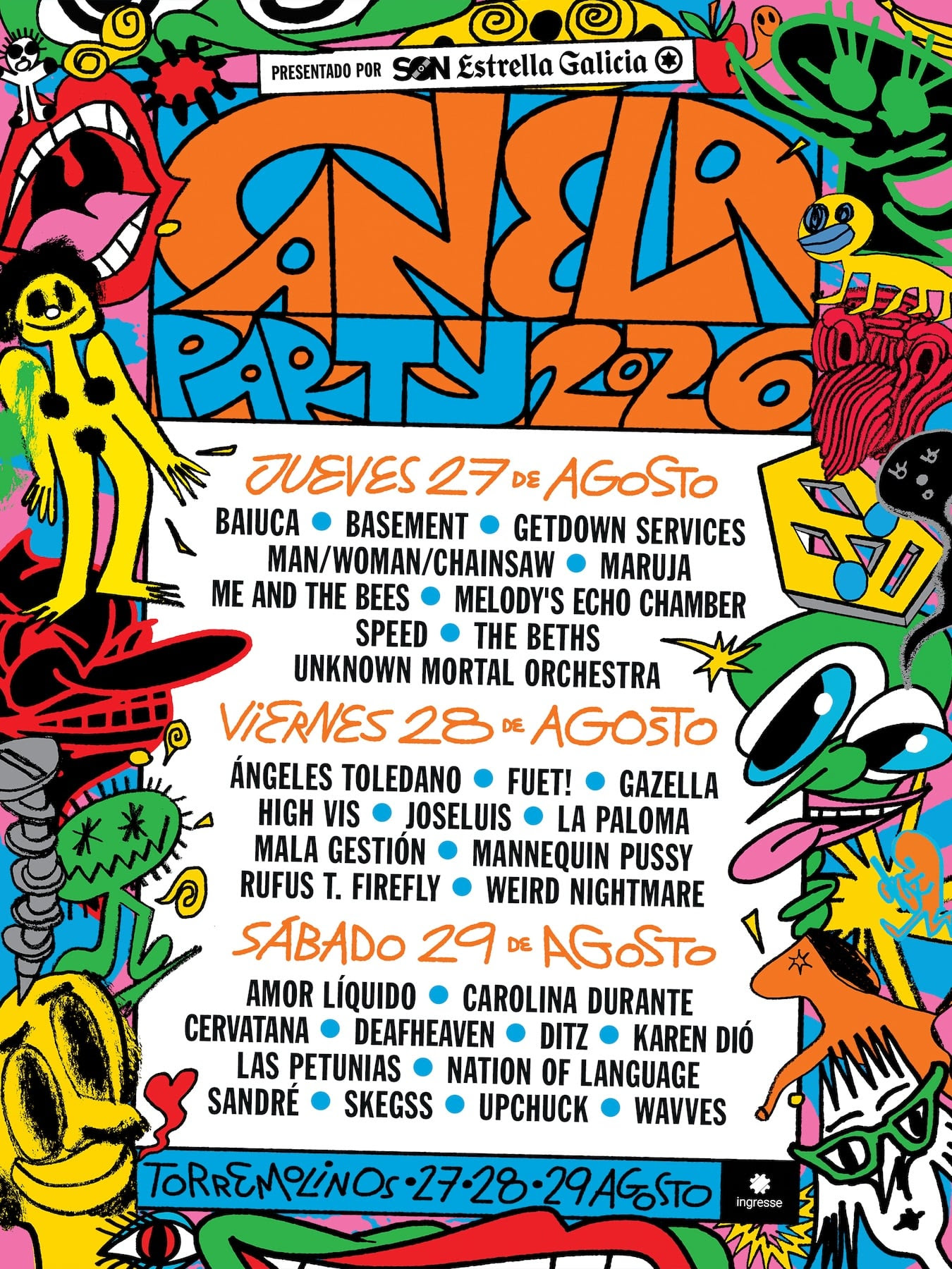 El viernes 28 de agosto, ya bien entrados en modo finde, se liará otra buena pajarraca con la presencia de Ángeles Toledano, FUET!, Gazella, High Vis (UK), joseluis, La Paloma, Mala Gestión, Mannequin Pussy (USA), Rufus T. Firefly y Weird Nightmare (CAN).