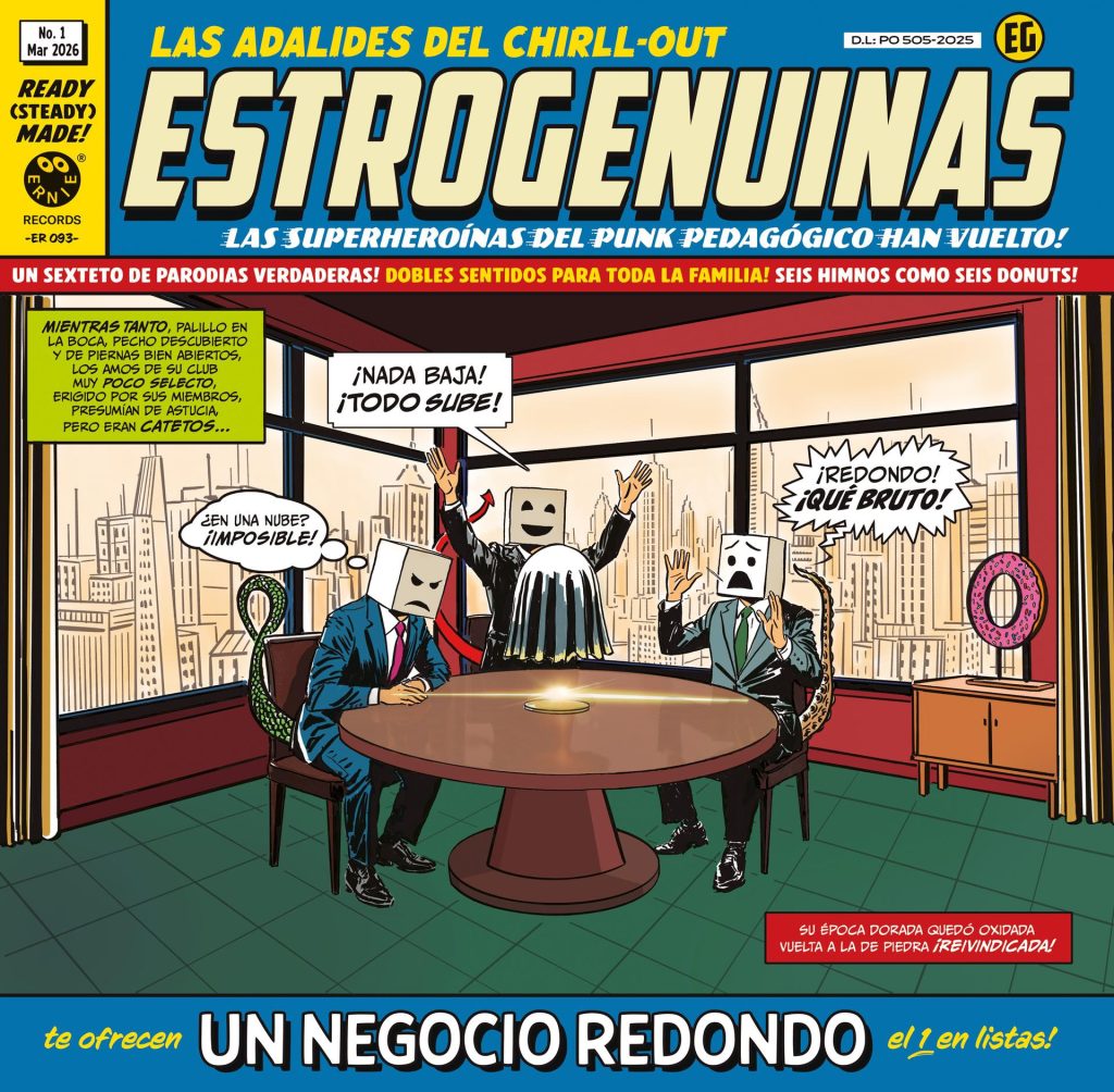 Estrogenuinas presentan ‘Un negocio redondo’, un disco que confirma su lugar como una de las propuestas más singulares e inteligentes del panorama independiente. Publicado por Ernie Records, el trabajo reúne seis canciones que condensan la esencia del grupo: humor como arma, cultura como columna vertebral y guitarras como vehículo de pensamiento. Lejos de acomodarse, el cuarteto afina su discurso y expande su sonido con una colección de temas que oscilan entre el punk rock más directo, ecos noventeros y un pop melódico que funciona como caballo de Troya para letras mordaces y sentenciosas.