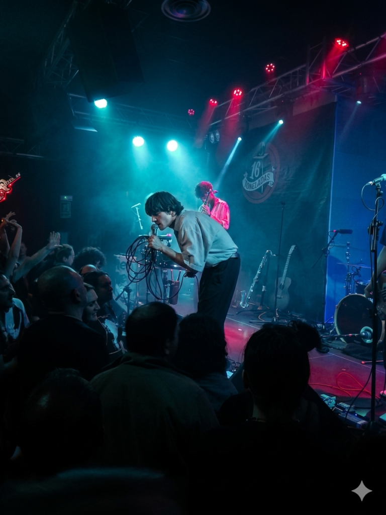 dentro de la gira de presentación de su reciente trabajo «Existence is Bliss» (So Records, 2026) tras su paso por Bilbao, Vigo, Cádiz y Madrid. Entre el público, varias generaciones congregadas entre los 20 y los 50 años, todo un mérito para un grupo relativamente reciente y que nos habla del interés que suscitan. La mayoría era autóctono aunque por los acentos también se podía adivinar la presencia de algún paisano británico.