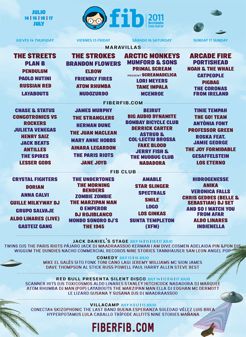 La organización del festival castellonense FIB ha hecho pública la colocación por días y escenarios de los grupos que formarán el elenco de música y arte del festival. El escenario Maravillas suple al extinto escenario Heineken, siendo éste el encargado de acoger las actuaciones de Mumford & Sons, The Strokes, Arctic Monkeys, Arcade Fire o The Streets.