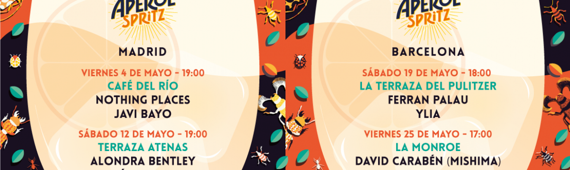 El trayecto hacia Primavera Sound 2018 contará como principal novedad con la primera edición de Els Aperitius del Primavera amb Aperol, que desembarcarán en Madrid y Barcelona con una serie de conciertos a media tarde programados para disfrutar entre amigos. Mientras se degusta un aperitivo Aperol Spritz se podrá escuchar el pop etéreo de Nothing Places (4 de mayo) y la delicadeza de Alondra Bentley (12 de mayo) en Madrid, y la lírica exquisita de David Carabén (cantante de Mishima, 25 de mayo) y el folk mágico de Ferran Palau (19 de mayo) en Barcelona. Todas las actuaciones irán rubricadas por una sesión de DJ posterior, que permitirá a los asistentes adentrarse en la electrónica de Ylia, la fiesta tropical de Sonido Tupinamba, el eclecticismo de Javi Bayo y el desenfado de El Almacén de Discos DJs.