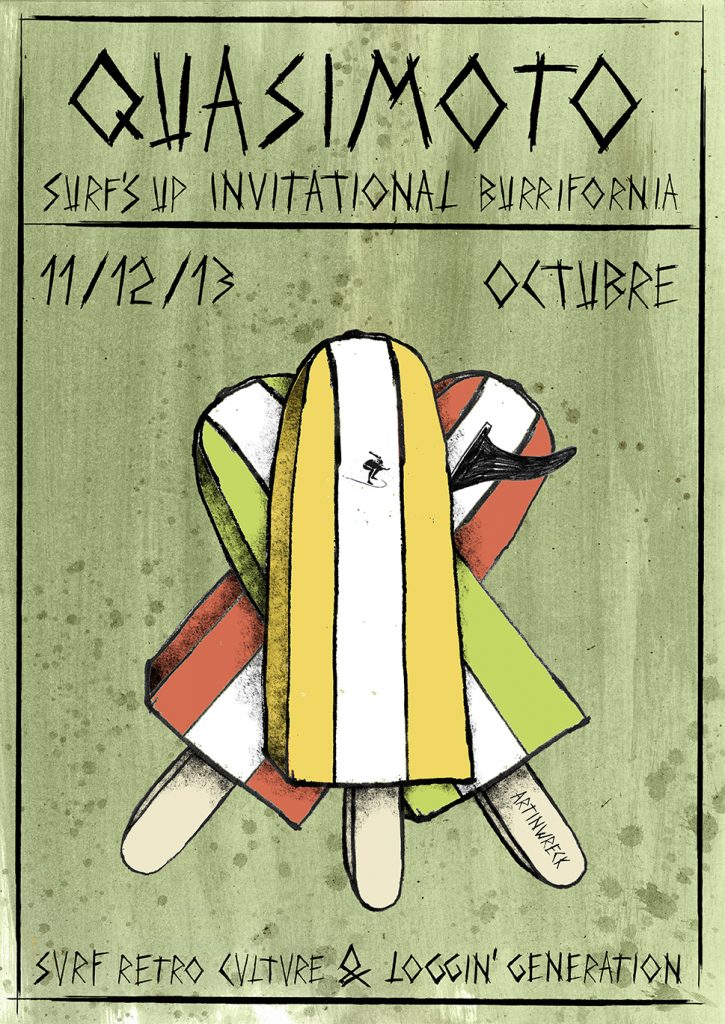 Del jueves 11 al sábado 13 de octubre tendrá lugar una nueva edición del Quasimoto Surf´s Up Invitational Burrifornia en la localidad castellonense de Borriana, tres días de Convivencia, Surf Classic Tablonero, longskate, Films, Conciertos, Sorteos, Subastas, Paellas, Barbacoas y Mercadillo.