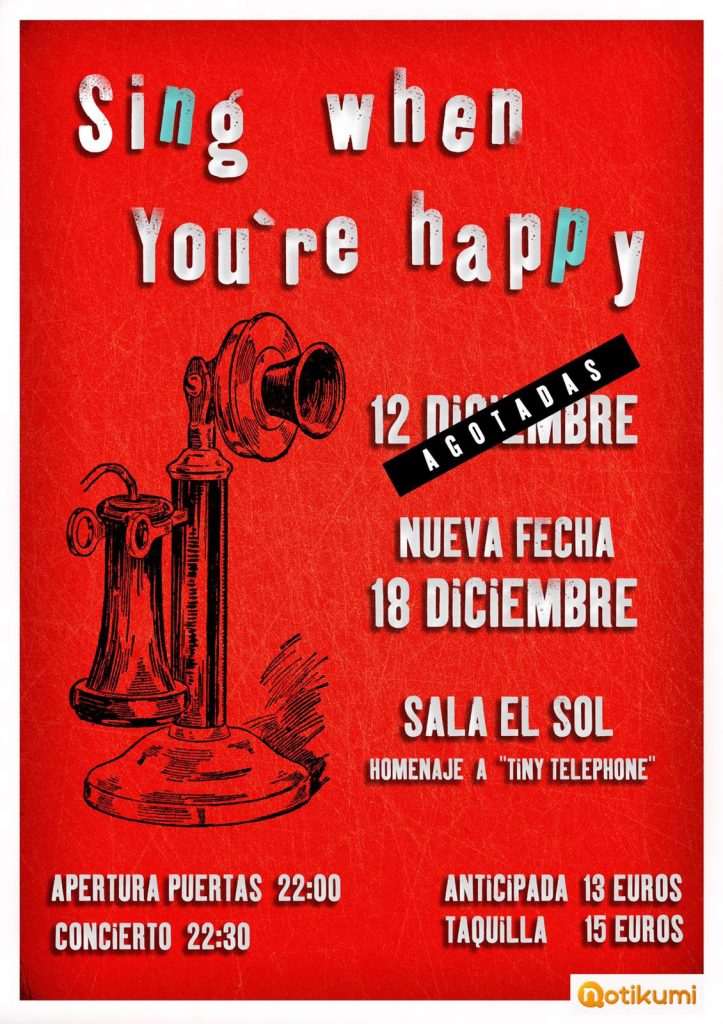 Después de agotar todas las entradas para el concierto «Sing when you’re happy» del 12 de diciembre en la sala El Sol de Madrid, se añade una nueva fecha: el 18 de diciembre.