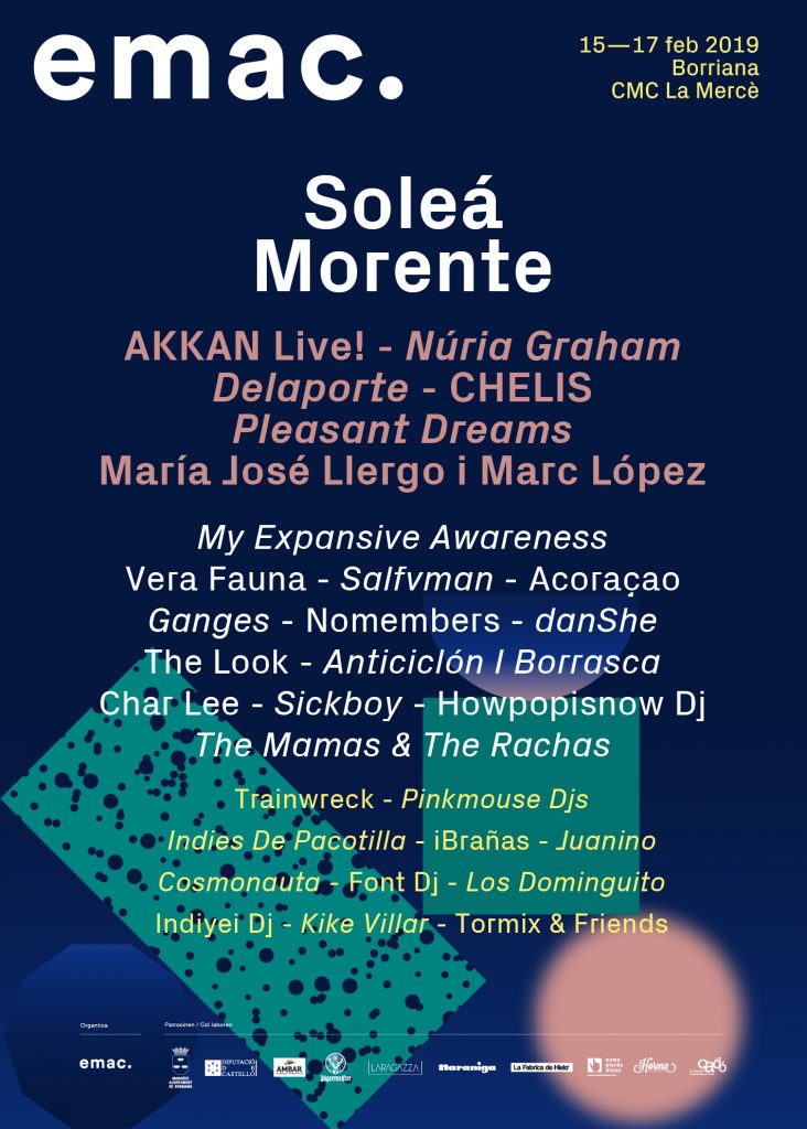 emac. 2019 estará capitaneado por Soleá Morente, que llegará hasta el Amfiteatre de la Mercè en formato trío junto a Napoleón Solo y Lorena Álvarez para hacer un extenso repaso a su fulgurante carrera musical.