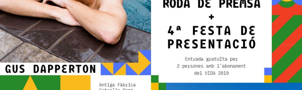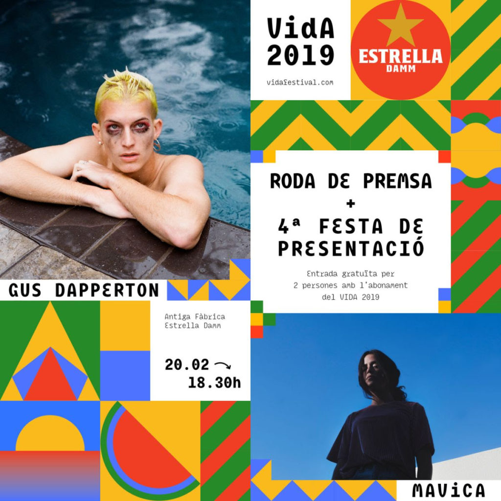 A causa de los eventos que puedan tener lugar el próximo 21 de febrero, hemos creído conveniente modificar la fecha de la 4ª fiesta de presentación del VIDA 2019. Así, la misma se celebrará el próximo miércoles 20 de febrero en la «Antiga Fàbrica» de Estrella Damm (Roselló 515, Barcelona) con las actuaciones de Gus Dapperton y Mavica.