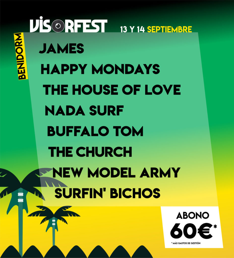 Visor Fest anuncia dos nuevas y fabulosas confirmaciones con las que completa un cartel de infarto: Surfin’ Bichos y Nada Surf. Con ellas, el festival cierra un line up que incluye a legendarias formaciones como James, Happy Mondays, The House of Love, Buffalo Tom, The Church o New Model Army, con las que recuperar el espíritu de las bandas nacidas en los 80 y 90. El festival tendrá lugar los días 13 y 14 de septiembre en el Parque de l’Aigüera (Auditorio Julio Iglesias) de Benidorm.