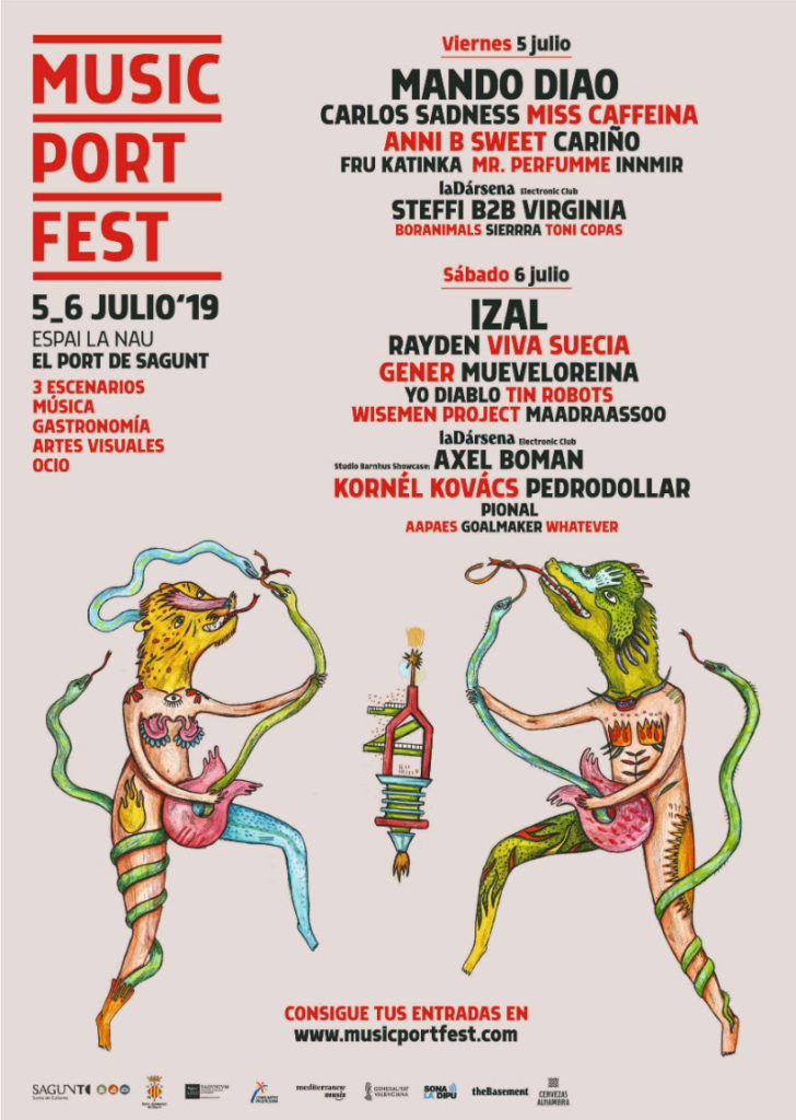 La segunda edición del Music Port Fest contará con una presencia destacada de artistas valencianos. Así, los días 5 y 6 de julio, l’Espai La Nau de Puerto de Sagunto acogerá las actuaciones de Gener, Mueveloreina, Fru Katinka, Yo Diablo, Tin Robots y Mr. Perfumme. Además, Wisemen Project e Innmir ofrecerán al público sus selecciones de música de baile. Por último, el escenario laDársena Electronic Club del colectivo theBasement será el espacio para la música electrónica con los Djs valencianos Boranimals, Sierrra, Toni Copas, Aapaes, Goalmaker y Whatever Charles junto a destacados Djs de la escena de club europea como Axel Boman o Steffi & Virginia.
