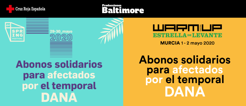 WARM UP Estrella de Levante y Spring Festival han abierto sendos paquetes de abonos solidarios, cuya recaudación irá destinada íntegramente a Cruz Roja, una de las entidades encargadas de coordinar la ayuda a la población afectada. Producciones Baltimore ha hecho una donación inicial de 2000€ por cada festival.