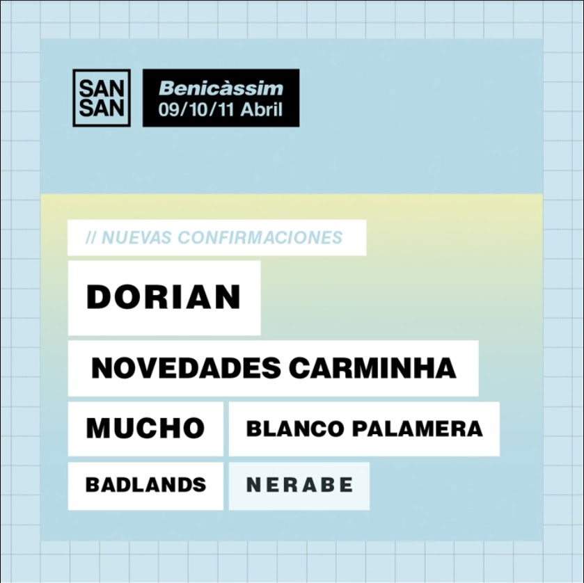 Dorian y Novedades Carminha se suman al cartel del SanSan Festival 2020, que reunirá a más de 50 artistas en Benicàssim en abril.