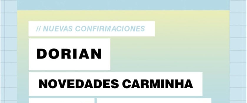 Dorian, Novedades Carminha, Mucho, Nerabe, Badlands y Blanco Palamera se suman a los artistas ya confirmados de momento: Leiva, Miss Caffeina, La Casa Azul, Carolina Durante, La Bien Querida, Delaporte, Las Chillers y The Crap Apples. La combinación de estilos, desde el rock al folk, pasando por la electrónica y el pop, es una de las señas de identidad de nuestro festival que programa tanto a jóvenes promesas y nuevas tendencias, como a grupos consolidados y premiados.