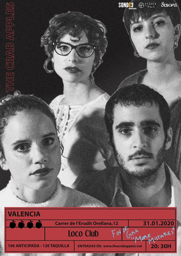 El próximo mes de enero de 2020, The Crab Apples actuarán en valencia en la sala Loco Club, como parte del fin de la gira «More Mistakes».