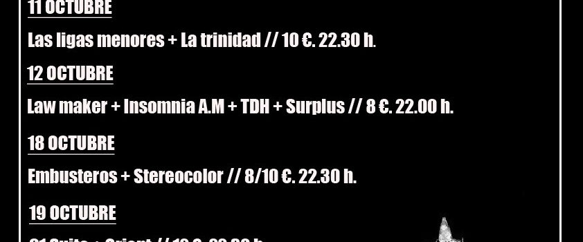 12 OCTUBRE: Law Maker + Insomnia AM + TDH + Surplus. 8 €. 22.00h.