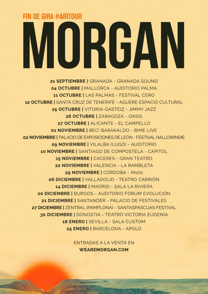 Tras su arrollador primer disco, «North», en marzo de 2019 Morgan presentan «Air» y salen a la carretera: más de 100 conciertos en salas, teatros y festivales por toda la península, Irlanda o UK (entre ellos BBK, Mad Cool, escenario principal del Jazzaldia o dos días seguidos con entradas agotadas en el Circo Price) de una larga gira que ha recogido por el camino cinco premios de la Música y reconocimiento unánime.