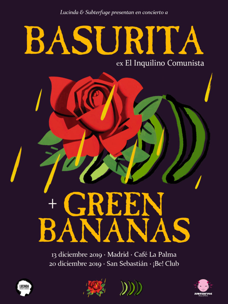 Basurita es el nuevo grupo de Santi Real, de El Inquilino Comunista –míticos pioneros del indie patrio-, junto a otros ilustres músicos del País Vasco como Iñigo Romera (Los Clavos, Cancer Moon), Gurru (Zodiacs, Electrobikinis) y Javier Goti (The Growl). Su debut es ‘Primer Juramento’ (Subterfuge, 2019).