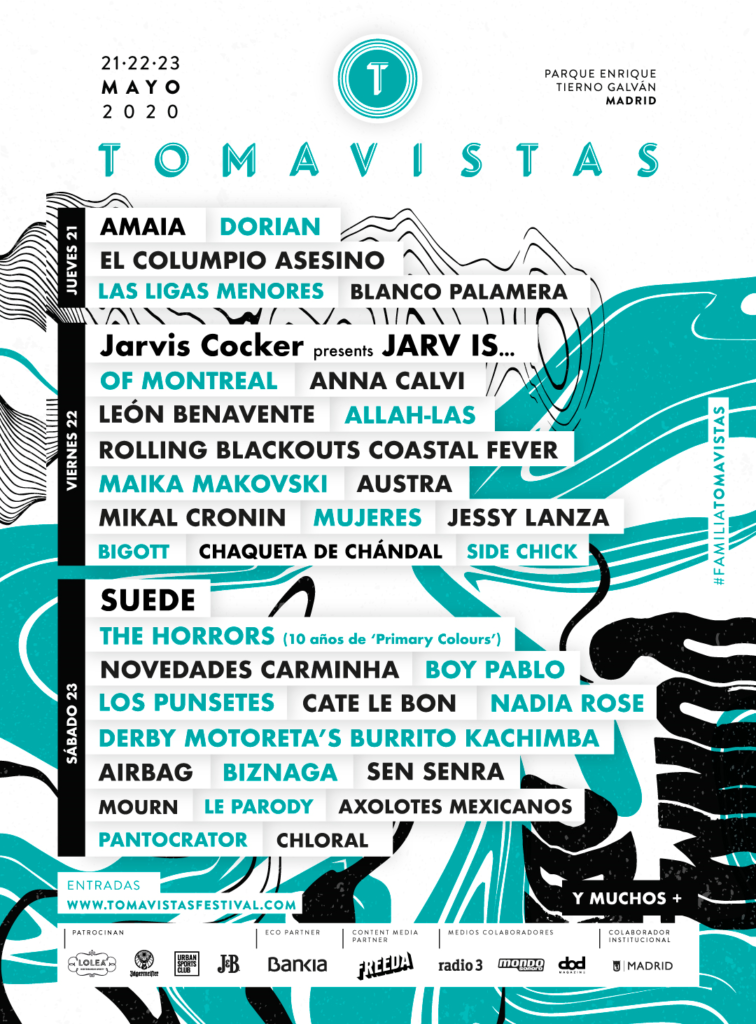Jueves 21: Amaia, Dorian, El Columpio Asesino, Las Ligas Menores, Blanco Palamera. // Viernes 22: Jarvis Cocker presents JARV IS…, of Montreal, Anna Calvi, León Benavente, Allah-Las, Rolling Blackouts Coastal Fever, Maika Makovski, Austra, Mikal Cronin, Mujeres, Jessy Lanza, Bigott, Chaqueta de Chándal, Side Chick. // Sábado 23: Suede, The Horrors (10 años de ‘Primary Colours’), Novedades Carminha, Boy Pablo, Los Punsetes, Cate Le Bon, Nadia Rose, Derby Motoreta’s Burrito Kachimba, Airbag, Biznaga, Sen Senra, Mourn, Le Parody, Axolotes Mexicanos, Pantocrator, Chloral, y muchos más.