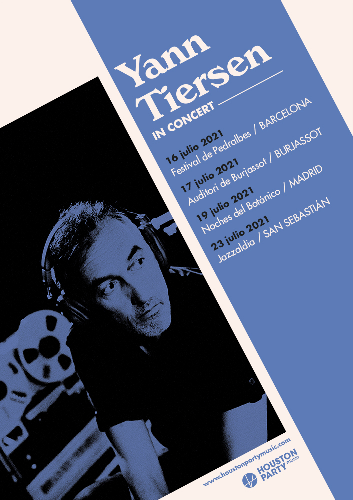 El francés Yann Tiersen girará en julio de 2021 por nuestros escenarios. Estas son las fechas y el itinerario de su tour: Barcelona, el día 16 de julio de 2021 (Festival de Pedralbes); Burjassot (Valencia), el 17 (Auditori de Burjassot); Madrid, el 19 (Noches del Botánico) y San Sebastián, el 23 (Jazzaldia).