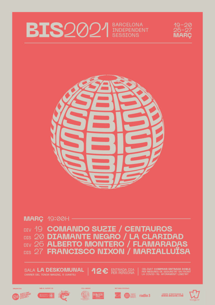 Comando Suzie, Centauros, Diamante Negro, La Claridad, Alberto Montero y Marialluïsa, cartel completo de una edición mini de 4 jornadas del BIS Festival en La Deskomunal del barrio de Sants en Barcelona para los dos últimos fines de semana de marzo (siempre que la pandemia lo permita).