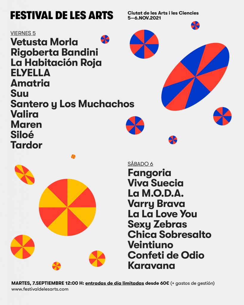 Ya tenemos todos los artistas confirmados para la sexta edición del Festival de les Arts que tendrá lugar el 5 y 6 de noviembre de 2021 en la Ciudad de las Artes y las Ciencias de Valencia.