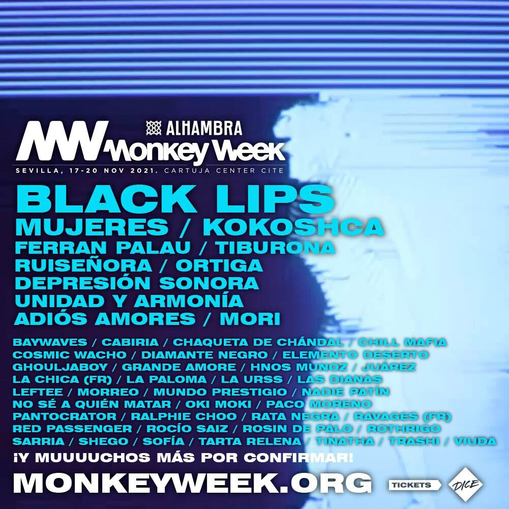 Les acompañan un Ghouljaboy pletórico, entre lo mainstream y lo underground; el revitalizante electro-punk de Grande Amore; la delicada combinación de ambient, pop urbano y ritmos latinos de Hnos Munoz; el pop fibroso y socarrón de Juárez; el noise como género y como actitud de La Paloma, o los siempre oscuros y arrolladores La URSS. Se suman también a Alhambra Monkey Week 2021 esa nueva generación de orfebres del pop vintage llamadas Las Dianas; el giro inesperado de un urbano Leftee a la sonoridad pop-rock; ese Morreo a dos bandas, entre el post-punk y la mitología yeyé; la asombrosa y pegadiza sampledelia de Mundo Prestigio; Nadie Patín o los actuales herederos del power pop de tradición sureña y el hipnótico y vaporoso kraut pop de No Sé A Quién Matar.