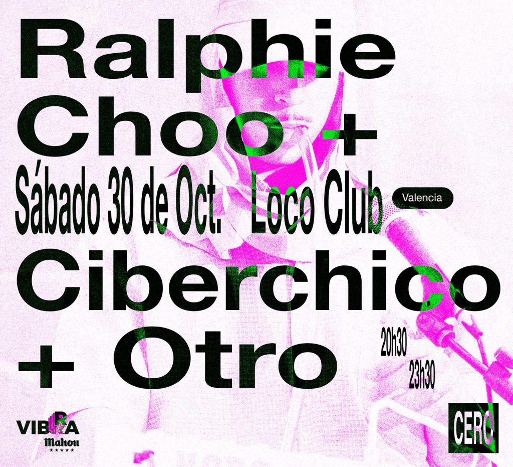 Desde @cero.en.conducta siguen apostando por el directo en sala, por el talento emergente, local, nacional e internacional y desde esa perspectiva presentan el concierto en sala de Ralphie Choo, Ciberchico y Otro.