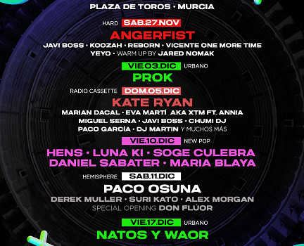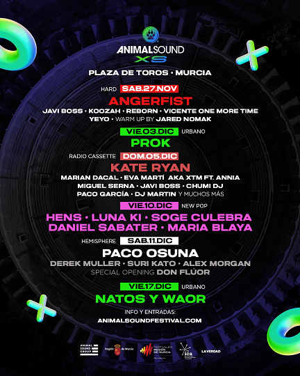 Hasta el próximo 17 de diciembre, el festival Animal Sound estará celebrando en Murcia la segunda edición invernal, de su formato XS, con dos citas ubicadas en la Plaza de Toros con Paco Osuna, Natos y Waor, etc.